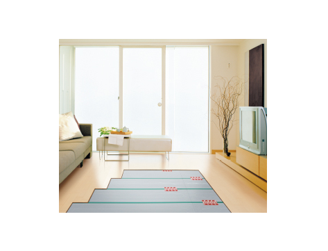 床下に敷いた温水マット(パネル)に熱源機でつくった約60℃のお湯を循環させ、お部屋全体を暖めます。やや低めの室温でも十分に暖かさを感じることができます。